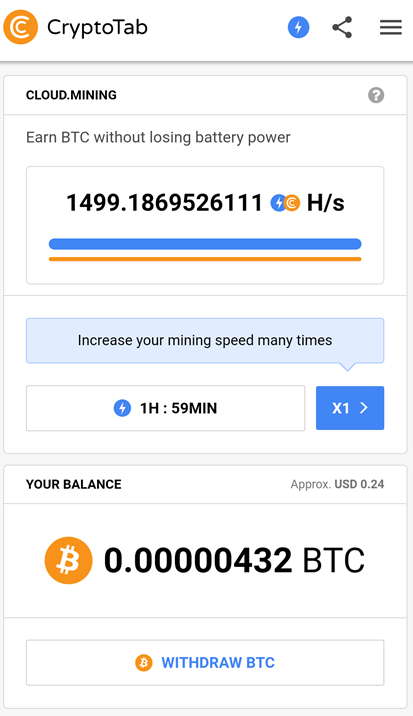 CryptoTab Browser is a special web browser with built-in mining features. Familiar Chrome user interface combined with extremely fast mining speed. Mine and browse at the same time!